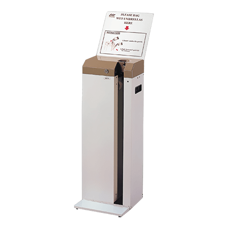 此款傘套機免插電、易操作,一次可裝填傘袋1000個傘袋,用完前,警訊燈自動閃光及聲響提示補袋。