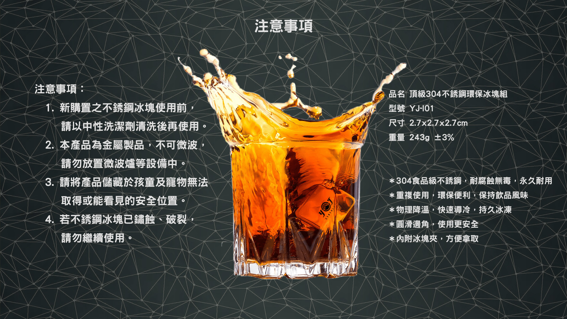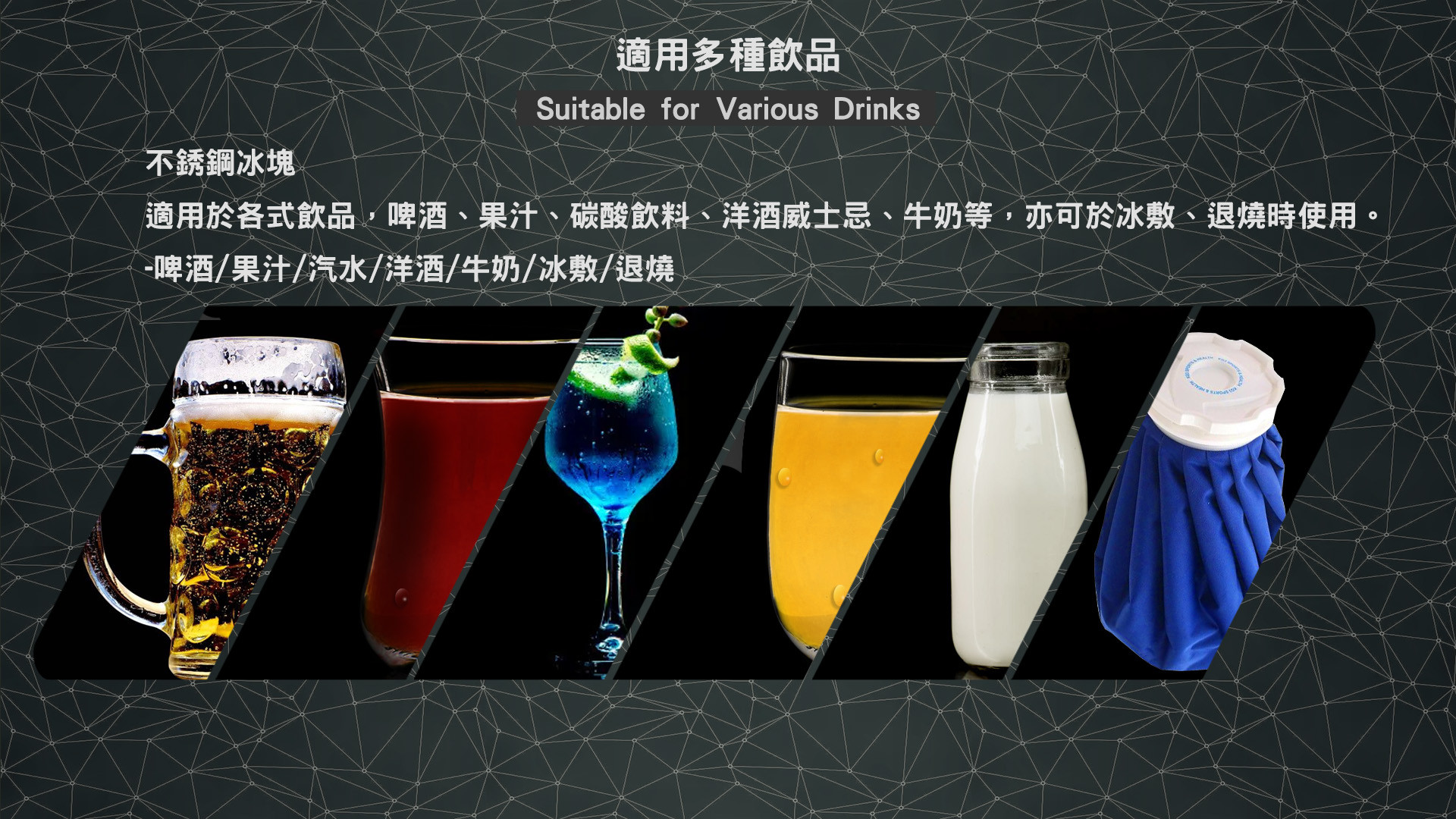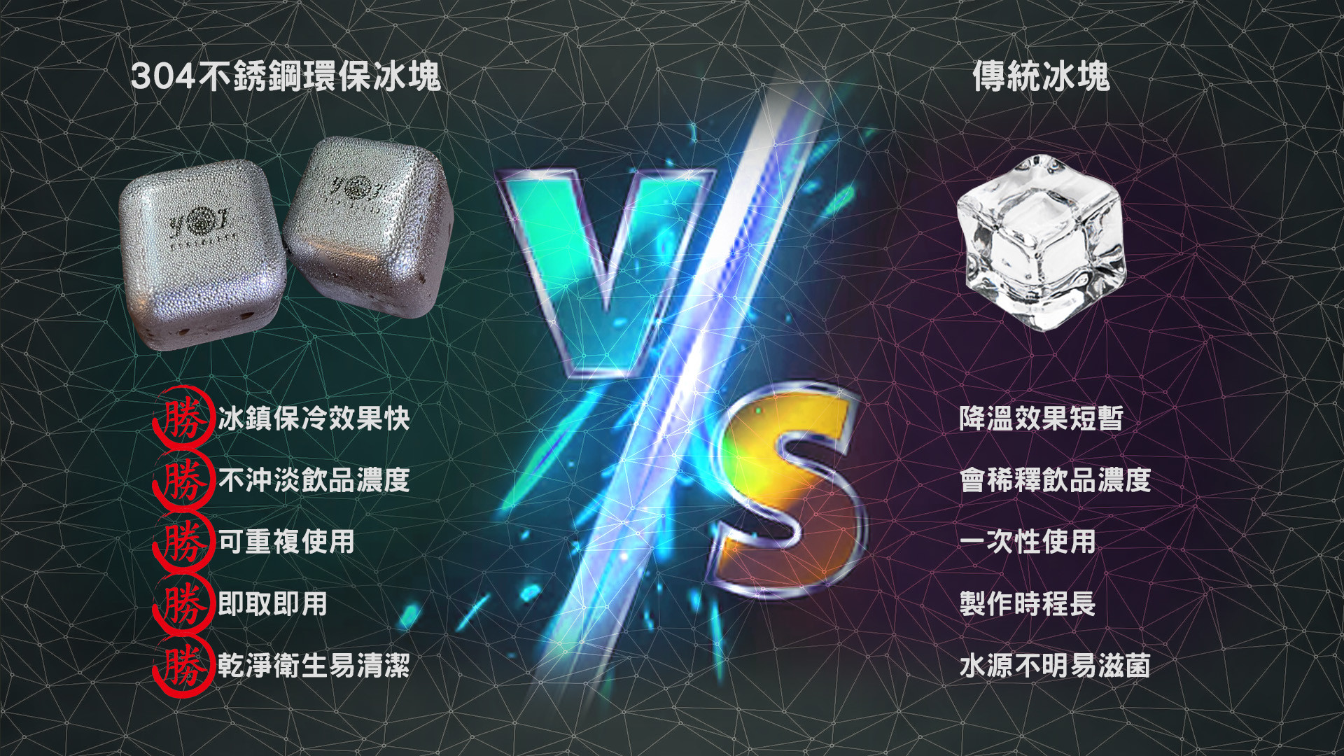 不銹鋼冰塊,不融化、不稀釋飲料影響風味 、無異味,符合國際 FDA檢驗、SGS檢驗標準合格,不會溶解出有害物質、環保衛生安全、可重複無限次使用。