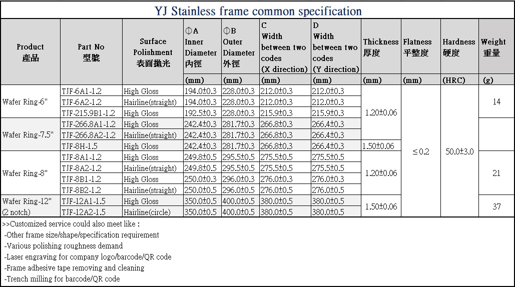 YJ ステンレスのウェーハフレーム/Wafer Frame/Disco Ring をお買い上げのお客様は