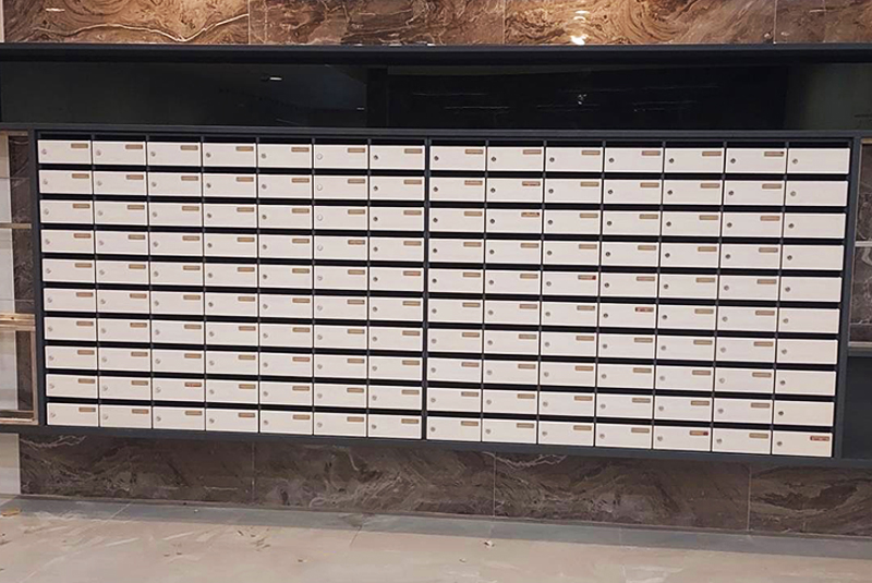 不鏽鋼具有優異的耐腐蝕性與結構強度,特別適合在多變的氣候環境中使用。不鏽鋼製的組合式信箱不僅堅固耐用,長期使用也不易變形或生鏽;其簡約俐落的外觀更能強化社區整體的視覺質感,展現現代建築的美學。