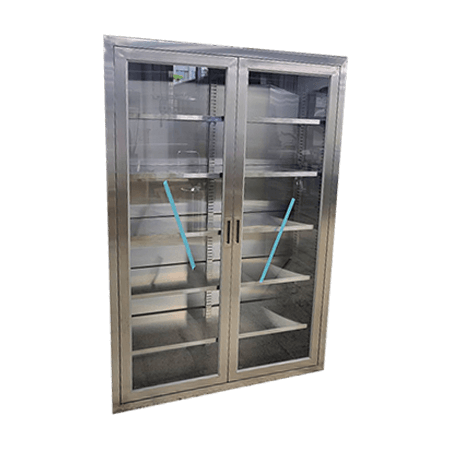 304不銹鋼置物櫃,堅固耐用,門板安裝透明玻璃,方便透視,外型美觀耐用。提供各式規格數量訂作,歡迎各單位洽詢。