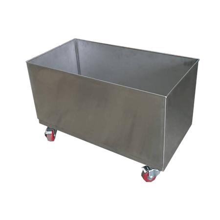 此款304不鏽鋼廢料推車,簡單大方,堅固耐用,安裝輪子方便移動。可依需求訂製尺寸大小規格數量。