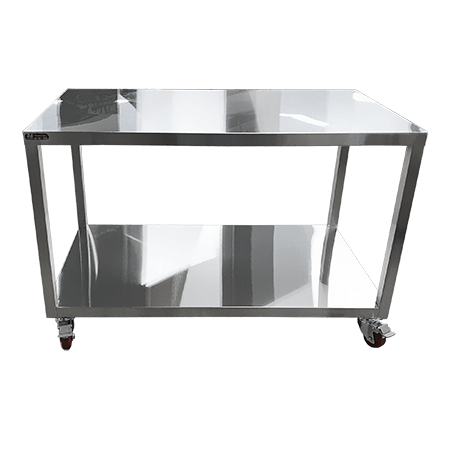 304不鏽鋼材工作桌,堅固耐用,安裝輪子,方便移動使用。工作桌提供各式規格數量訂作,歡迎各單位洽詢。