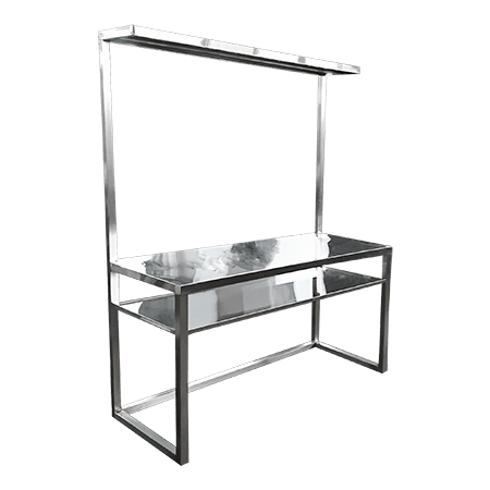 304不鏽鋼材工作桌,堅固耐用,雙層設計,上方加裝燈箱,方便燈管安裝,提升整體性。工作桌提供各式規格數量訂作,歡迎各單位洽詢。