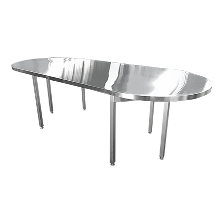 304不鏽鋼長型工作桌 TJ-161219,堅固耐用,兩側採弧型設計,大桌面方便使用。提供各式規格數量訂作,歡迎各單位洽詢。
