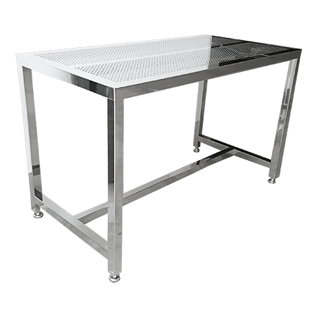 無塵室不鏽鋼沖孔桌 TJ-161271,亮面設計,堅固耐用。工作桌提供各式規格數量訂作,歡迎各單位洽詢。