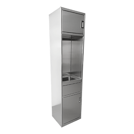 不鏽鋼水槽置物箱 TJ-170146,堅固耐用,此款採左右對開門設計,上下方均有置物空間,水槽結合置物櫃,省空間又美觀耐用。提供各式規格數量訂作,可依需求安裝抽換式名牌框、側把手等配件。