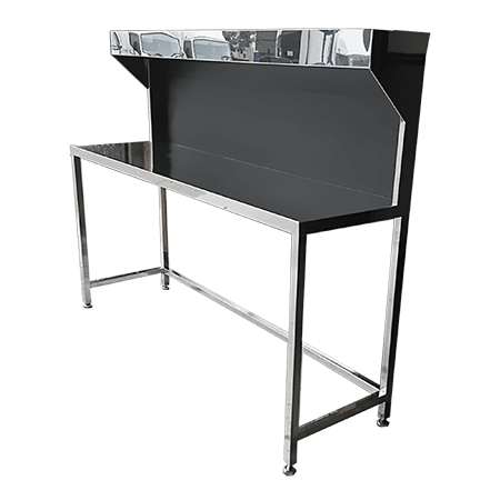 不鏽鋼異檢工作桌 TJ-171012,堅固耐用,上方加裝燈箱,方便燈管安裝,提升整體性。工作桌提供各式規格數量訂作,歡迎各單位洽詢。