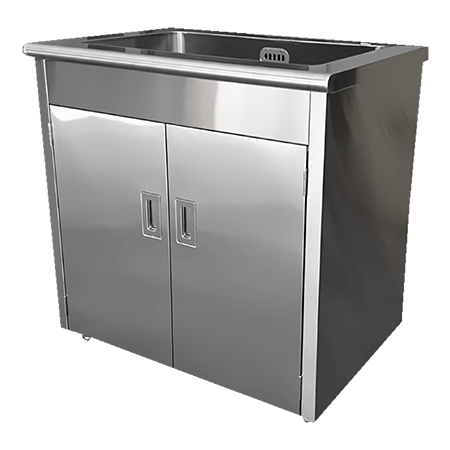 不鏽鋼對開式流理台 TJ-180521,採304不鏽鋼材質,堅固耐用,防鏽耐蝕,下方櫃計體採對開門式設計,方便收納,提供客製化服務,歡迎各單位洽詢。