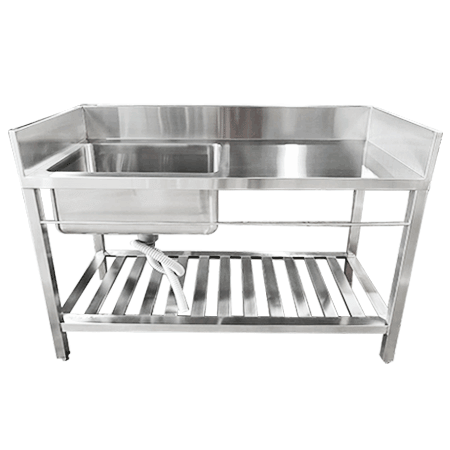 不鏽鋼水槽 TJ-230415槽,採304不鏽鋼材質,堅固耐用,防鏽耐蝕,客製化單槽式水槽,三邊擋水牆。水槽均提供客製化服務,歡迎各單位洽詢。