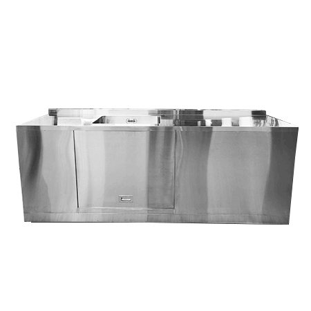 不鏽鋼流理台 TJ-230712,採304不鏽鋼材質,堅固耐用,防鏽耐蝕,客製化單槽式水槽,下方窗型活動門及隔板。水槽均提供客製化服務,歡迎各單位洽詢。