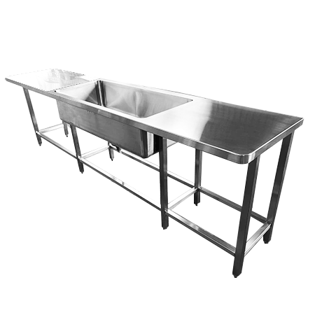 不鏽鋼水槽 TJ-230802,採304不鏽鋼材質,堅固耐用,防鏽耐蝕,客製化單槽式水槽,左右雙邊工作檯面。水槽均提供客製化服務,歡迎各單位洽詢。
