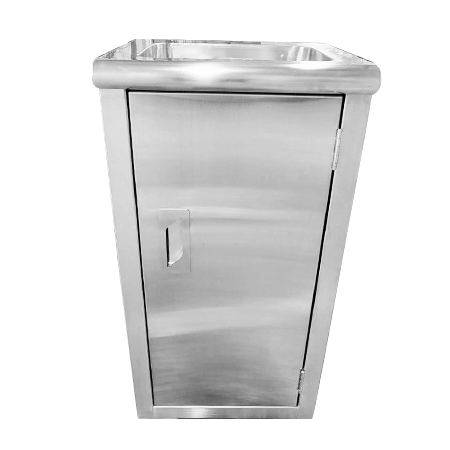 不鏽鋼水槽 TJ-230842,採304不鏽鋼材質,堅固耐用,防鏽耐蝕,客製化單槽式水槽,下方三面封板側開門,櫃內無層板及隔板。水槽均提供客製化服務,歡迎各單位洽詢。