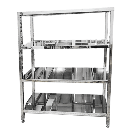 此款不鏽鋼四層置物架 TJ-230943 採用304不鏽鋼亮面的材質、接縫處滿焊,並符合無塵室規範。可依客戶需求訂製層板置物架,尺寸、款式,歡迎各單位洽詢。