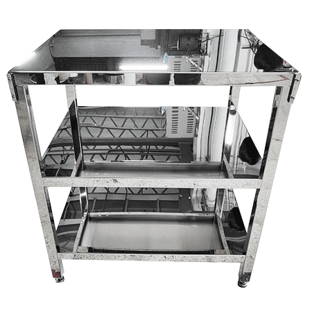 此款不鏽鋼三層置物架 TJ-231036 採用304不鏽鋼亮面材質、滿焊,並符合無塵室規範。可依客戶需求訂製層板置物架,尺寸、款式,歡迎各單位洽詢。