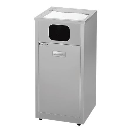 此款不鏽鋼菸灰缸垃圾桶 YJ-110B 均採用304不鏽鋼材質,上方附有大口徑的熄菸盤,深度為4 cm,開放式投入口使用方便,前傾45°角式門板,更換垃圾袋便利,避免垃圾袋外露、外型簡約美觀。