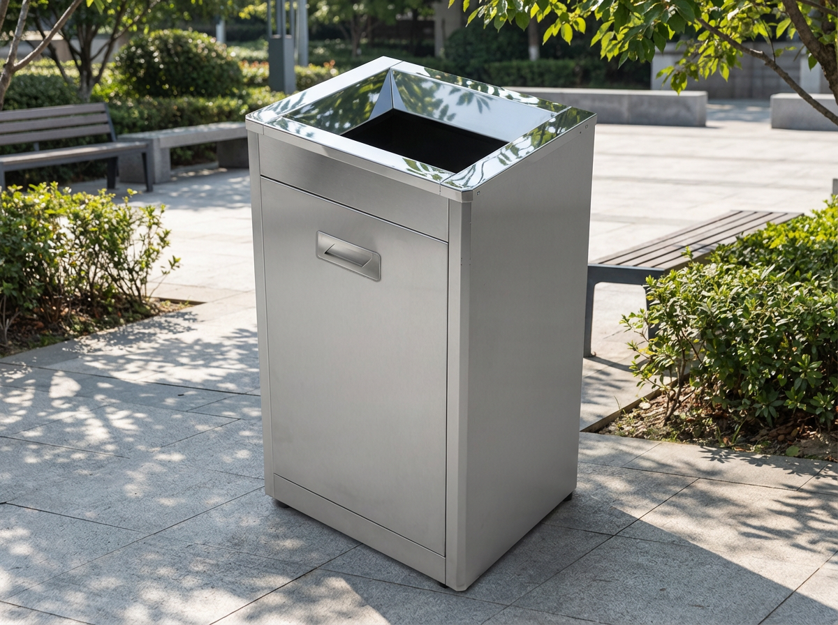 此款不鏽鋼垃圾桶 YJ-120B 內、外箱皆為304不鏽鋼材質,投入口為漏斗式設計,垃圾不易殘留於投入口,前門板為前開45°角式,外觀可避免垃圾袋外露,不僅美觀又實用。