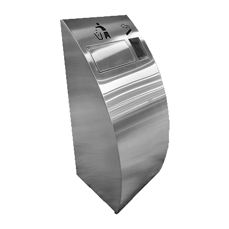 不鏽鋼熄菸垃圾桶 YJ-182 採用304不鏽鋼材質,前面板採用圓弧造型新款設計,結合菸灰桶,由後方更換垃圾袋,使用便利又美觀,可放置戶外騎樓下可供行人使用,使環境乾淨整潔。