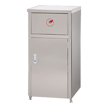 此不鏽鋼垃圾桶 YJ-190B 採用304不鏽鋼材質,附大口徑的投入口,方便投入體積較大的垃圾,投入口推板內含磁鐵,可使推板定位在同個位置上,採用側開式門板,內附不鏽鋼內桶。