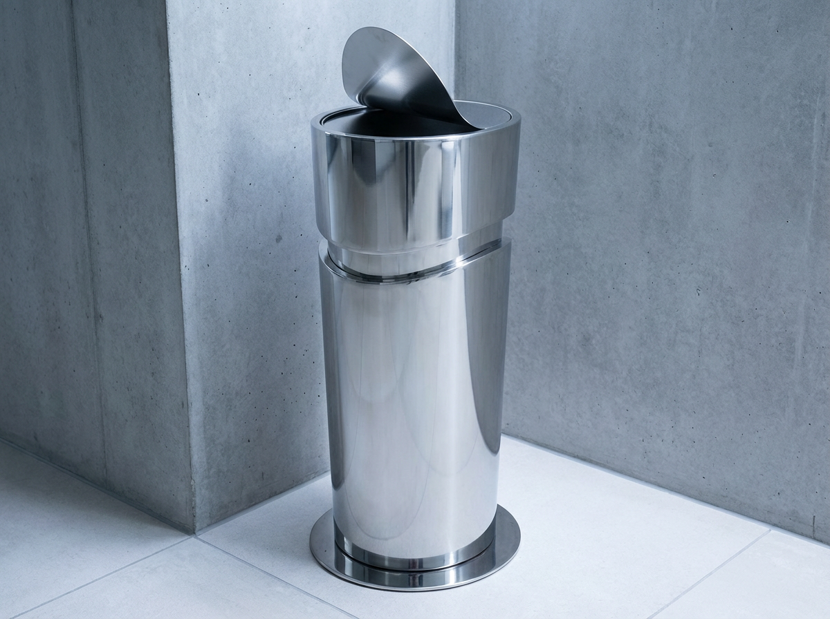 不鏽鋼垃圾桶 YJ-199A 材質為304不鏽鋼,圓弧型桶身,內部使用套袋框架設計,免用內桶,且垃圾袋不外露,設計師設計款,造型簡約時尚。