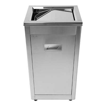 此款不鏽鋼搖擺式垃圾桶 YJ-60 內、外桶皆採用304不鏽鋼材質,上方投入口附有搖板,投入口為直線式(非漏斗型)口徑較大,前門板為前開45°角式,可避免垃圾袋外露,不僅美觀又實用。