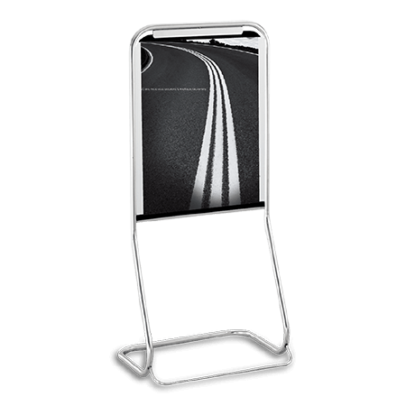 不鏽鋼直式標示牌 YJ‑805 材質為304不鏽鋼,框架為圓型管,附雙層壓克力板,兩根支柱重心穩固耐用,斜面設計使視覺效果更優。