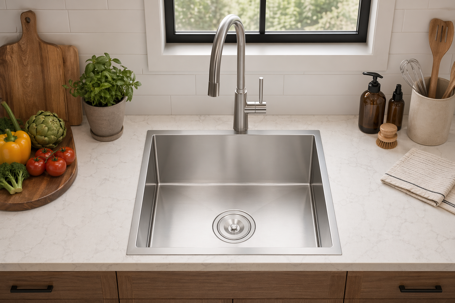 不鏽鋼水槽 YJ-S9449,含中型提籠,小巧便利,堅固耐用,可搭配濾水盆或滴水籃使用。