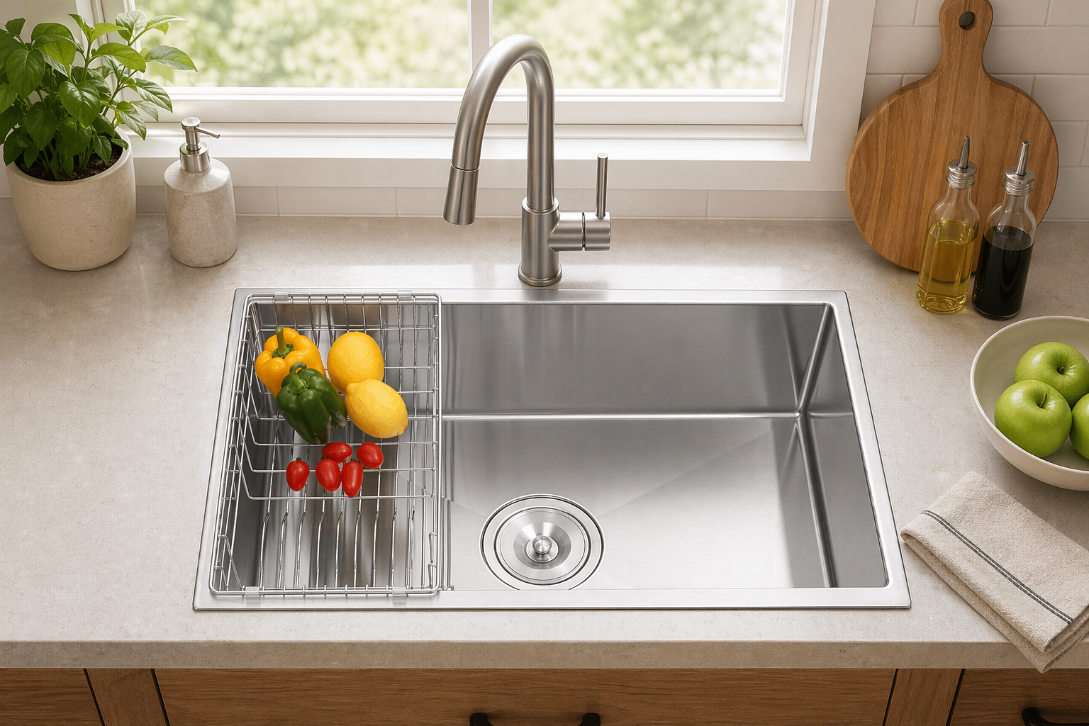 不鏽鋼水槽 YJ-S9477,含中型提籠,大小適中,使用便利,堅固耐用。