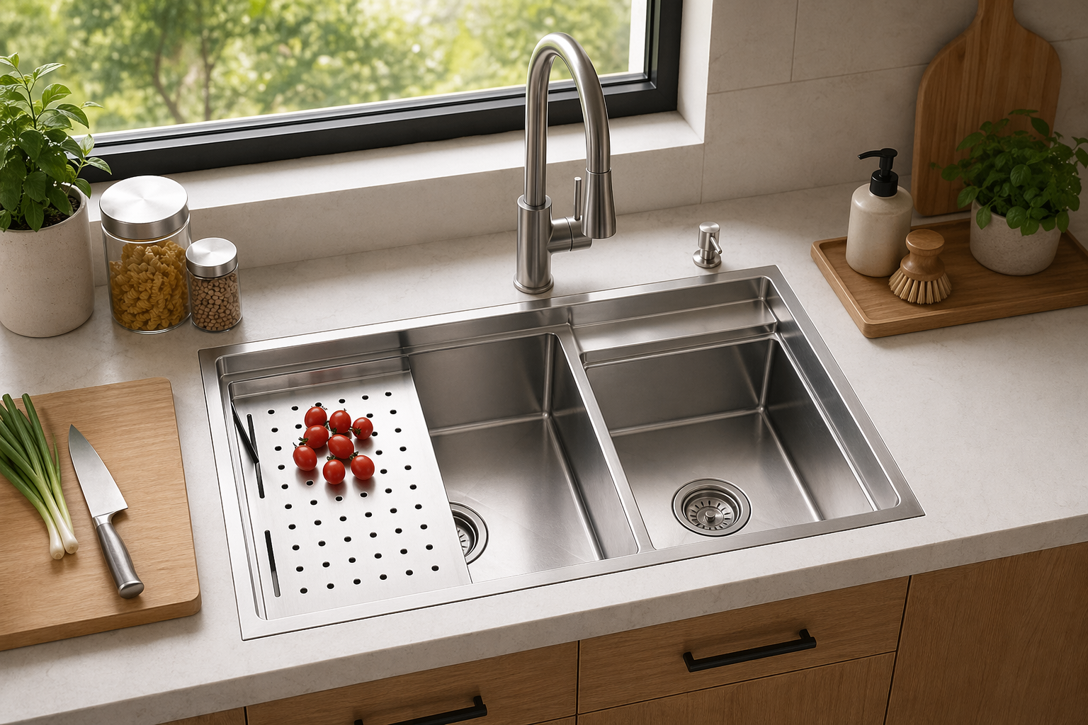 不鏽鋼水槽 YJ-S9687,含雙槽,可有效使用空間,堅固耐用。