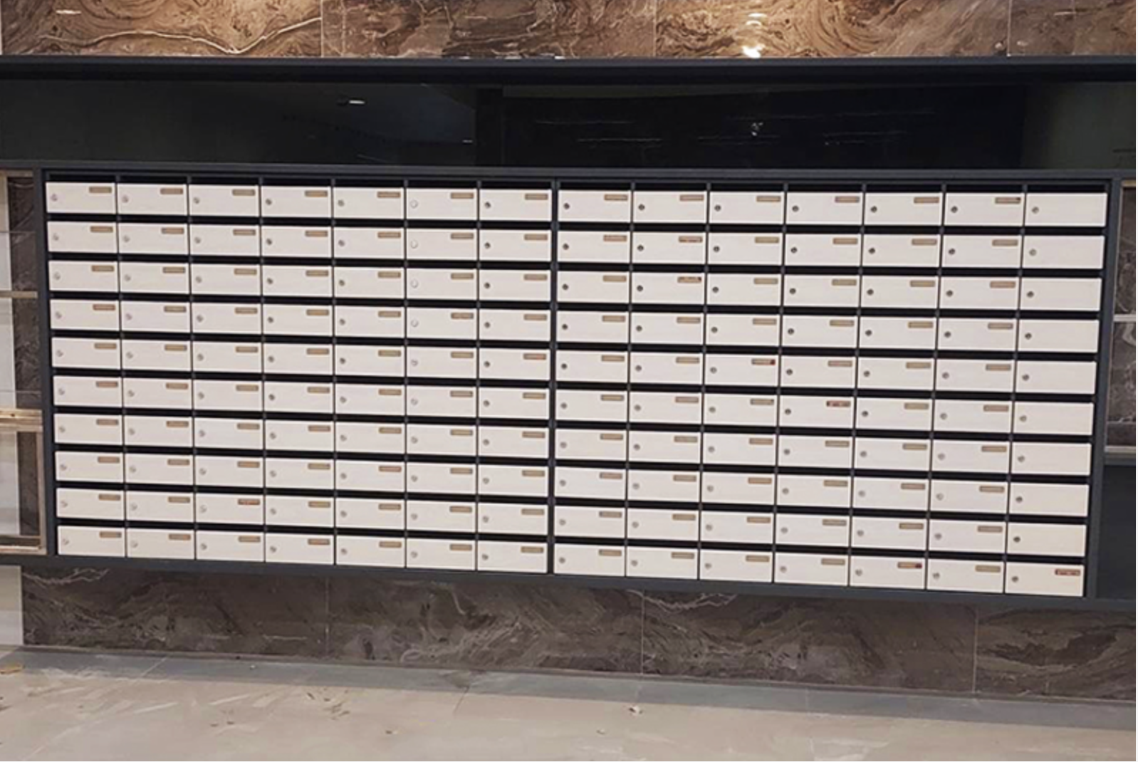 新建案採用組合式信箱不僅提升了質感,還吸引了對美感興趣的潛在買家與租戶。這樣的配置成為物業銷售與出租的一大亮點。